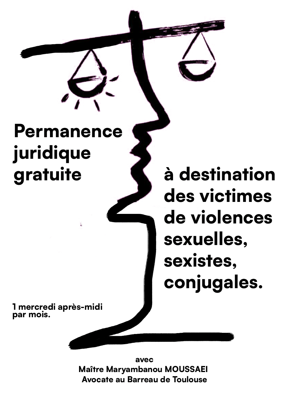 Le pompon sur la daronne propose un permanence juridique grâce à l’engagement bénévole de Me Maryambanou Moussaei, avocate pénaliste au barreau de Toulouse domiciliée au 20 rue de Languedoc, 31000 Toulouse.